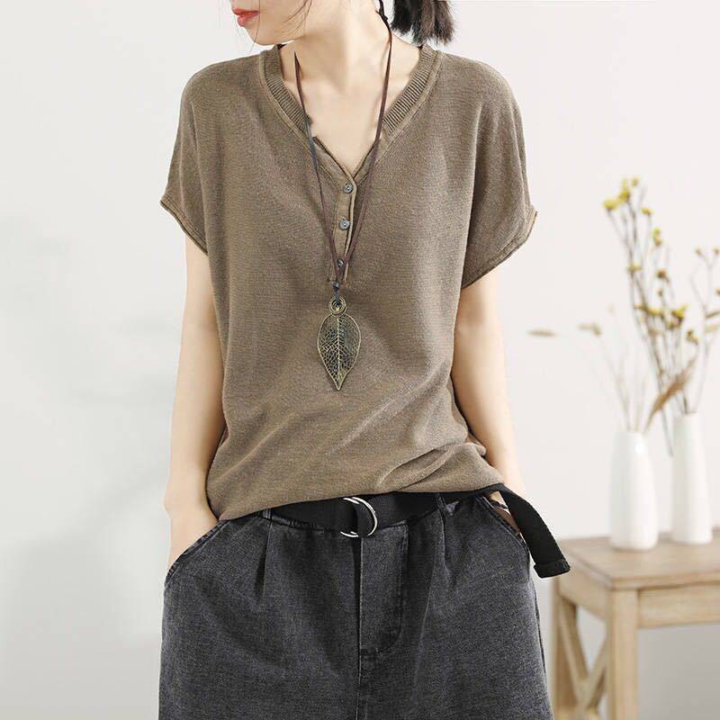 半小時前【夏季熱銷款】冰絲薄款V領短袖【超薄透氣】【舒適百搭】【促銷活動還在進行中哦!】 - 【夏季熱銷款】冰絲薄款V領短袖